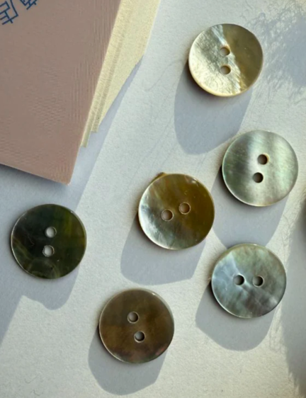 Perlemor er et naturmateriale, og der kan forekomme en naturlig variation i farve og tykkelse. Målene er vejledende, og de enkelte knapper kan være 1-1,5 mm større eller mindre end de angivne mål.